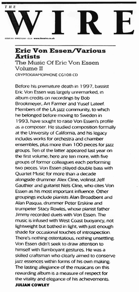 Volume II of The Music of Eric von Essen features the same stellar linup as