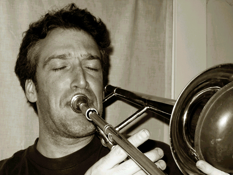 Scot's amazing multiphonic trombone, Nels Cline on e. guitars, Alex Cline on