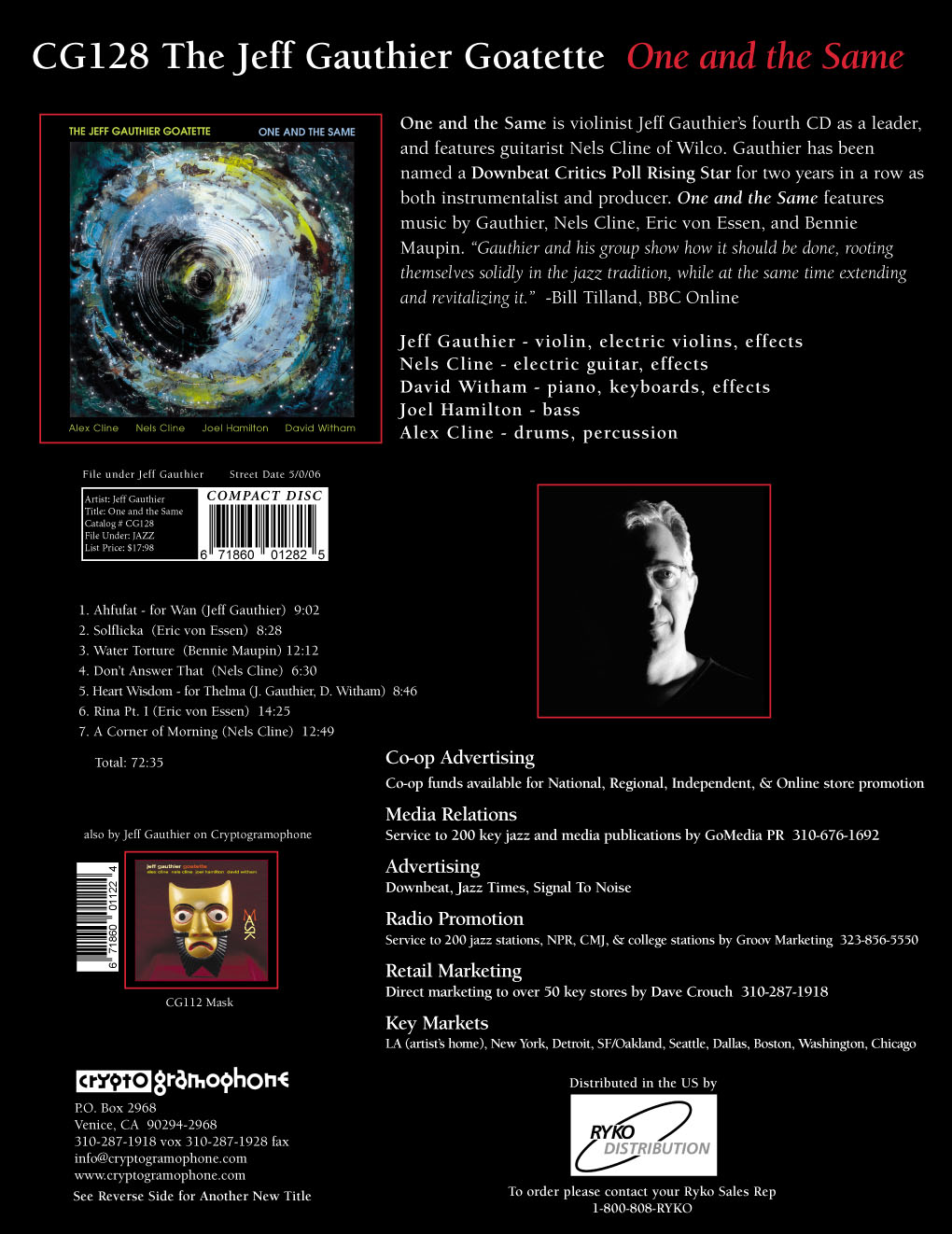 One and the Same is violinist Jeff Gauthier's fourth CD as a leader, and