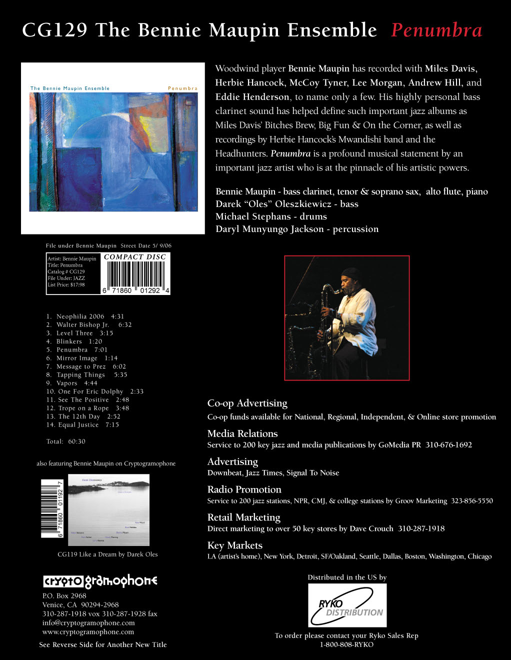 Bennie Maupin – bass clarinet, tenor & sop. saxophones, alto flute, piano